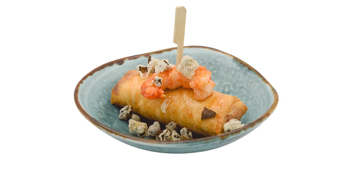 - Ingredientes: Gambón, langostino, verduras, soja, kimichi, sésamo, pasta de spring roll.