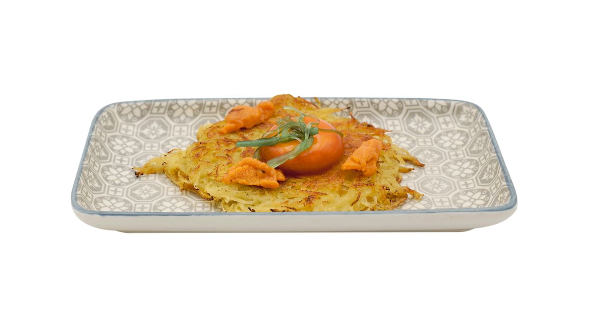 - Ingredientes: Patata, mantequilla, cebolla, papada ibérica, calamar, huevo y erizo.