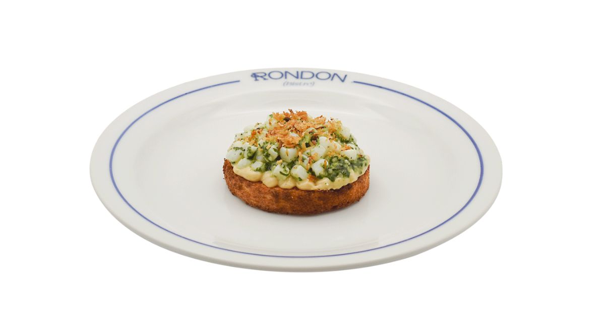 Rondon Bistró - Brioche de calamar ahumando y ajo negro