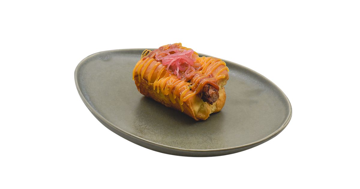 Soportales Vinotales - Hotdog de calamar con ketchup de tomatitos y chalotas crispy