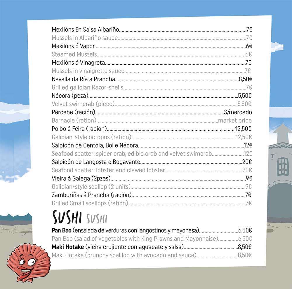 Esta vez, los tesoros de la ría de Vigo se dividen en un menú clasificado en mariscos y pescados, frituras, productos de panadería, postres y, por primera vez, una sección internacional que girará en torno a la comida japonesa.