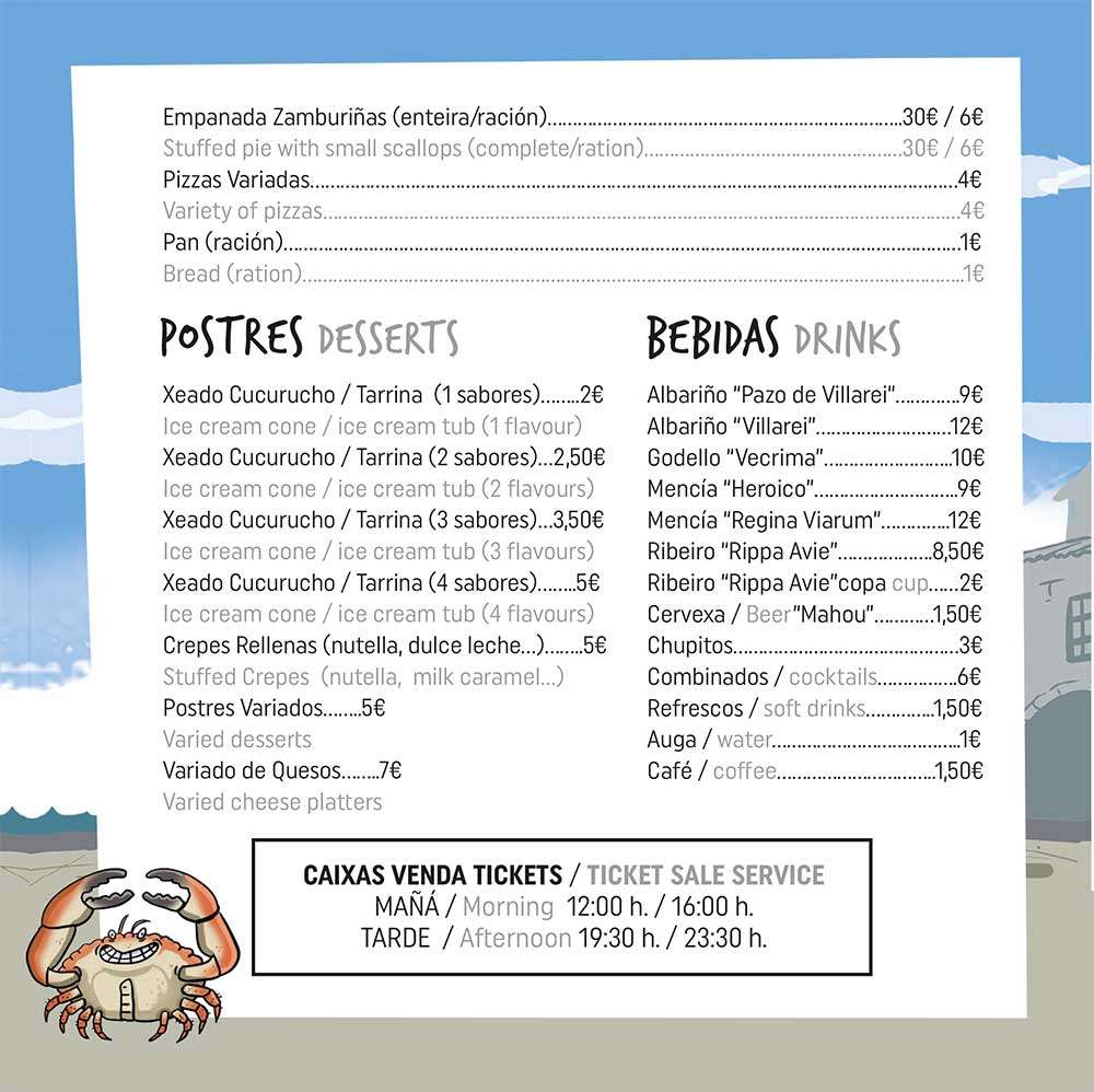 A continuación, te presentamos los precios y los menús de la Festa do Marisco de Vigo. Recuerda que esta fiesta gastronómica está pensada para los amantes del marisco, pero también hay opciones para aquellos a los que no les gusta o no pueden tomarlo. Empanadas y pizzas componen estas alternativas.
