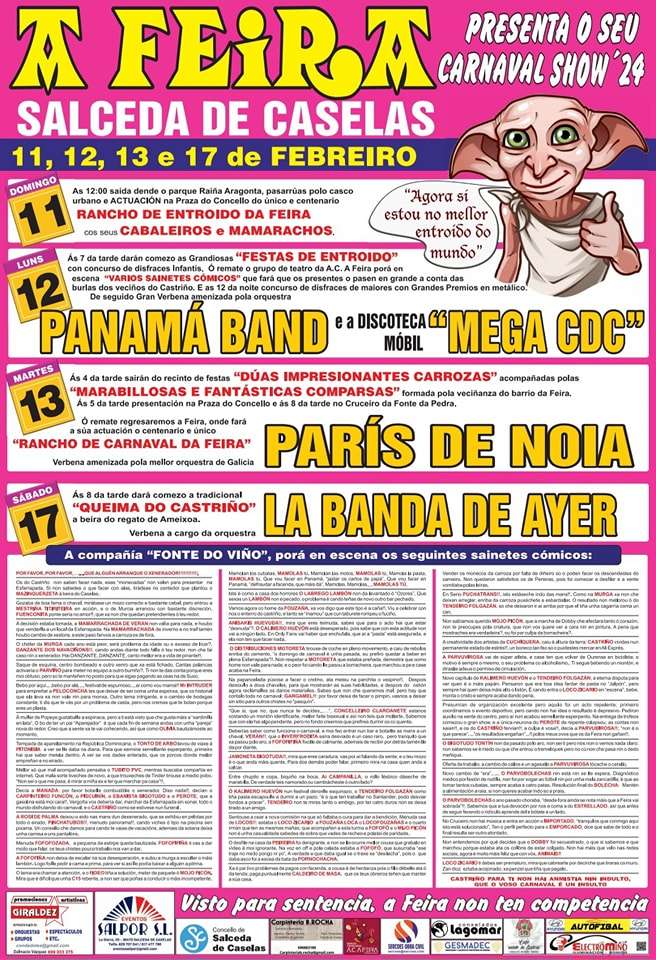 El enfrentamiento de los barrios de Salceda durante el Entroido se vive hasta en su programación. Las asociaciones de Castro Barreiro y A Feira ya hicieron públicos sus tradicionales pasquines junto a las verbenas que ofrecerán para celebrar esta “lucha” centenaria en la localidad de A Louriña. Orquestas como París de Noia o el grupo América de Vigo son las apuestas de las agrupaciones para ver cuál de las dos consigue organizar el mejor Entroido do Mundo en este 2024.