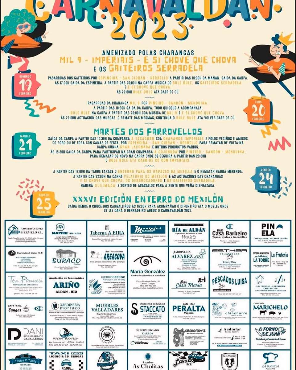 Además el sábado 18 Coiro también estará celebrando el Entroido a partir de las 17:00 horas. El domingo será el turno de Darbo y su Entroido Tradicional, que saldrá desde O Piñeiro a las 17:00 horas. Por último, el domingo 19 de febrero también arrancara el carnaval en Aldán, que lanza una amplia programación hasta el próximo sábado 25 de febrero.