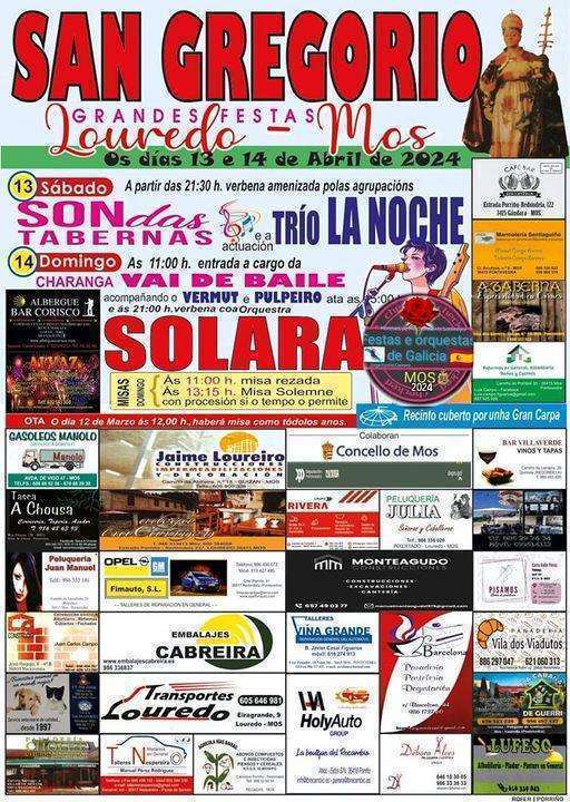 Las fiestas comenzarán este sábado día 13 de abril, a partir de las 21:30 horas en Louredo. La comisión de fiestas brindará en esta primera noche, en el torreiro de la parroquia, que contará con “una gran carpa”, una verbena amenizada por el grupo Son das Tabernas y el trío La Noche.