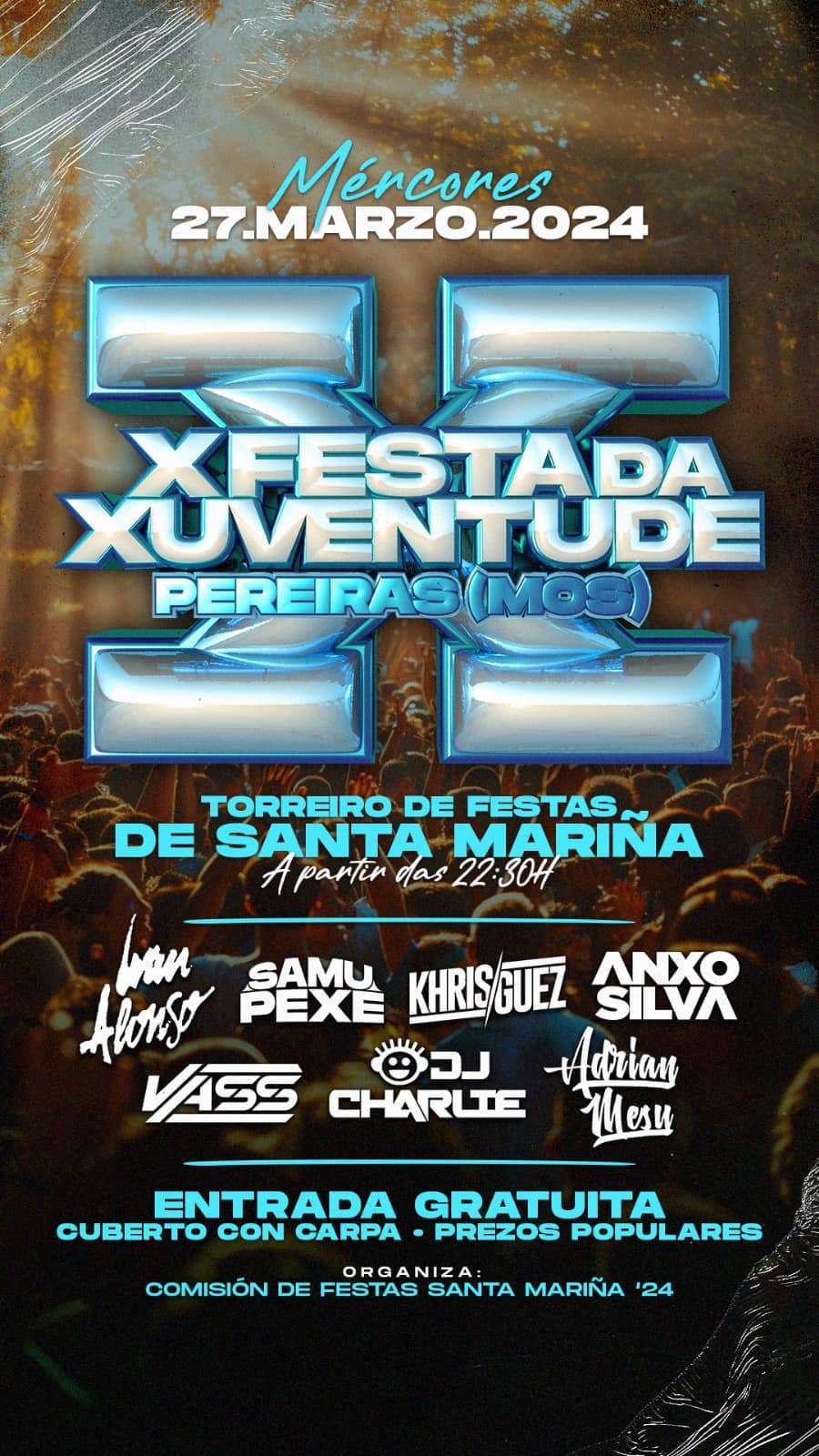 Así, este miércoles 27 de marzo, previo al jueves y viernes santo, la parroquia de Mos dedicará una noche entera a los jóvenes (y los que no lo son tanto) con su X Festa da Xuventude, donde siete DJ’s ofrecerán sus actuaciones a lo largo de la noche en torreiro de Santa Mariña de Pereiras. A partir de las 22:30 horas los artistas Iván Alonso, Samu Pexe, Khris Guez, Anxo Silva, Vass, DJ Charlie y Adrián Mesu brindarán sus mejores sesiones a los que se acerquen al recinto, que estará cubierto por una carpa, según informa la comisión.