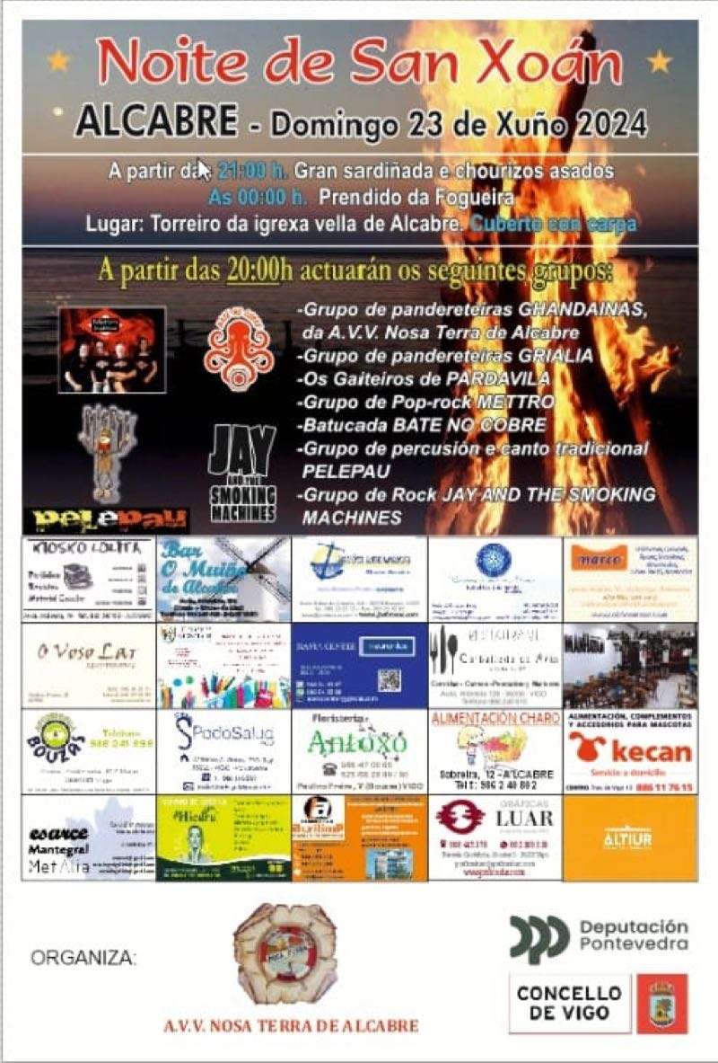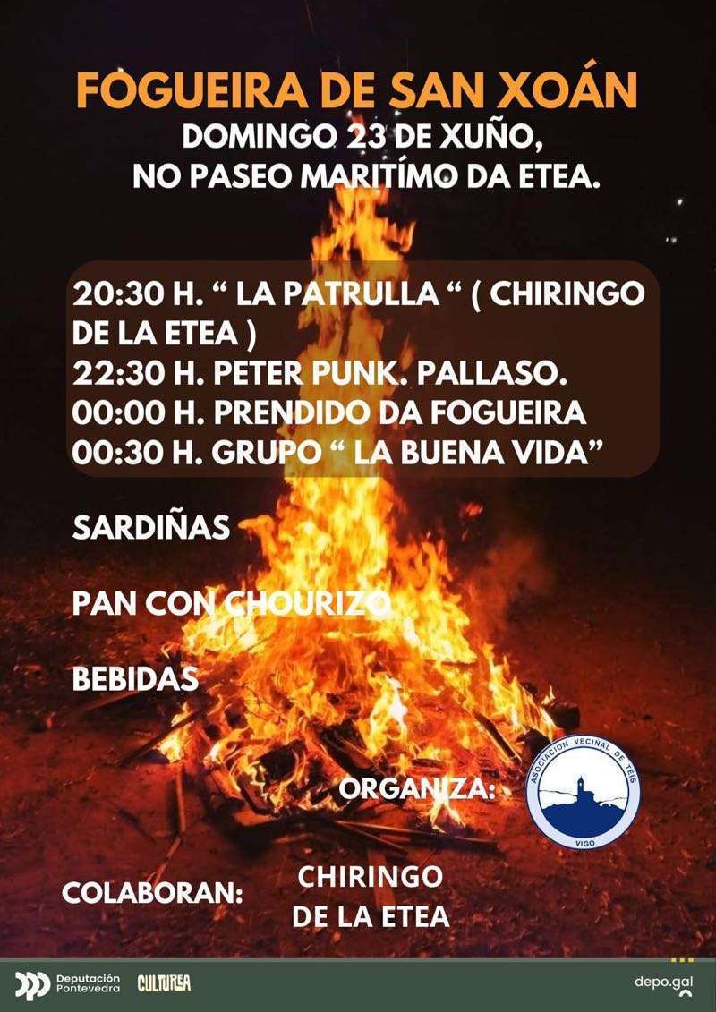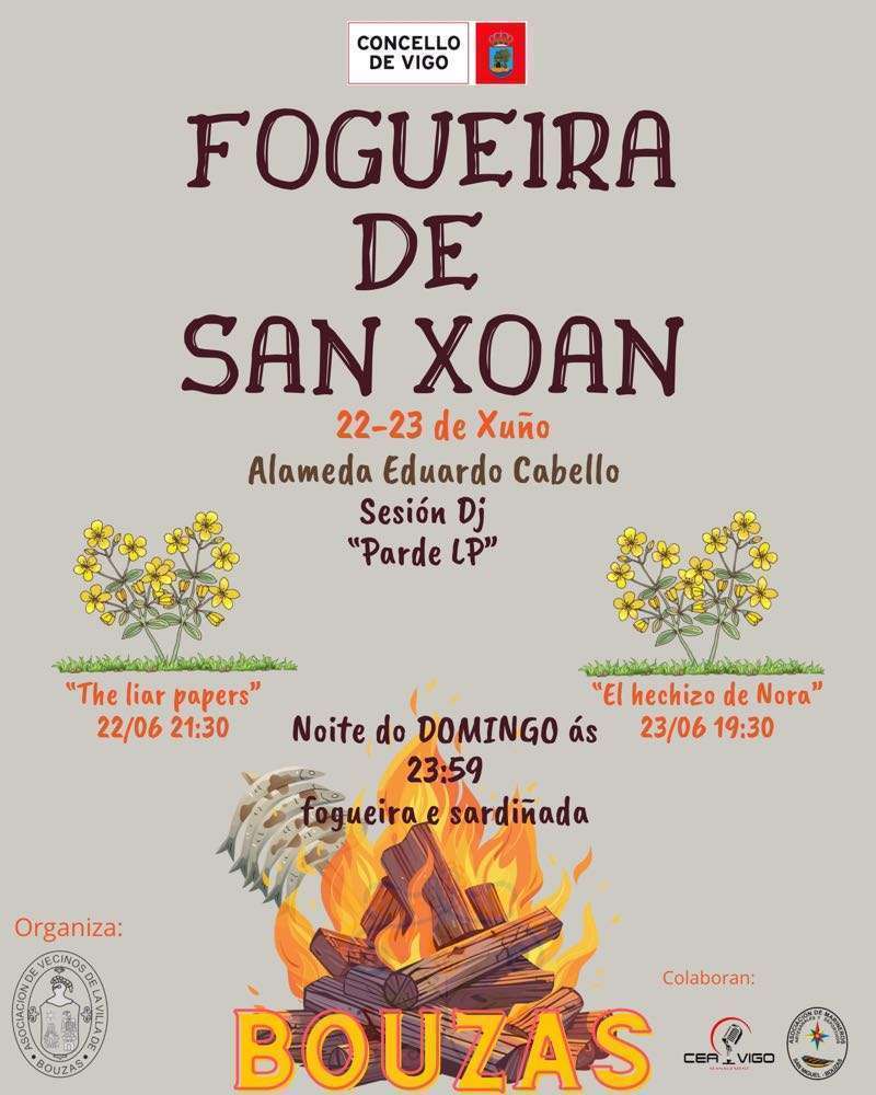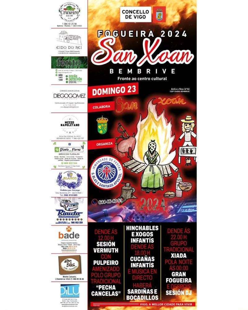 Y, por supuesto, Vigo y toda el área metropolitana vivirán el domingo las incontables fiestas de San Juan que llenarán de alegría, misticismo y fuego las plazas de parroquias y barrios. En el caso de la ciudad olívica, hay una veintena de fiestas organizadas, que puedes consultar en este enlace. A continuación también te dejamos los carteles de algunas de las principales celebraciones en Vigo y el área: