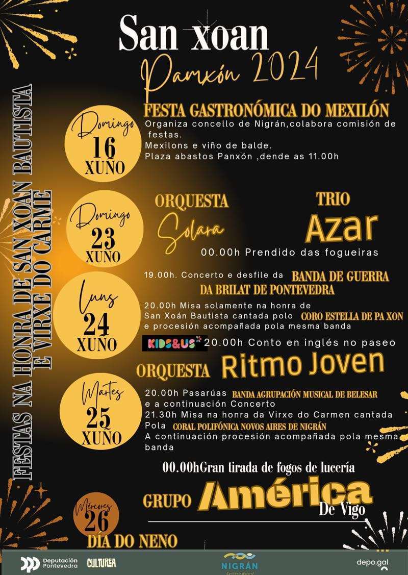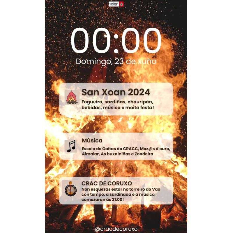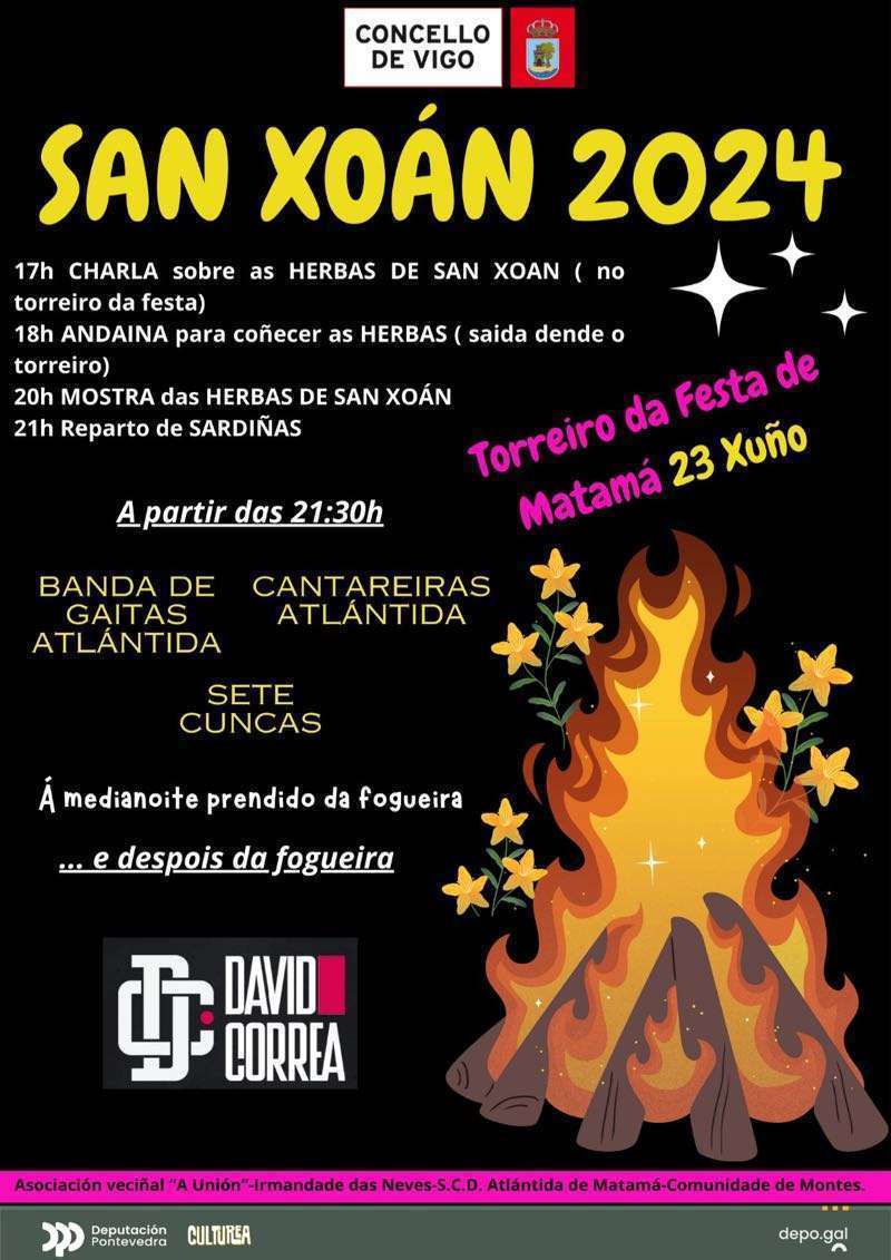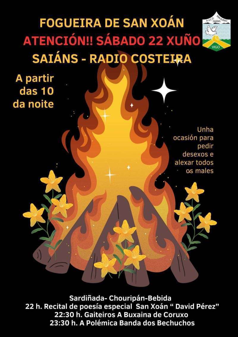 Y, por supuesto, Vigo y toda el área metropolitana vivirán el domingo las incontables fiestas de San Juan que llenarán de alegría, misticismo y fuego las plazas de parroquias y barrios. En el caso de la ciudad olívica, hay una veintena de fiestas organizadas, que puedes consultar en este enlace. A continuación también te dejamos los carteles de algunas de las principales celebraciones en Vigo y el área: