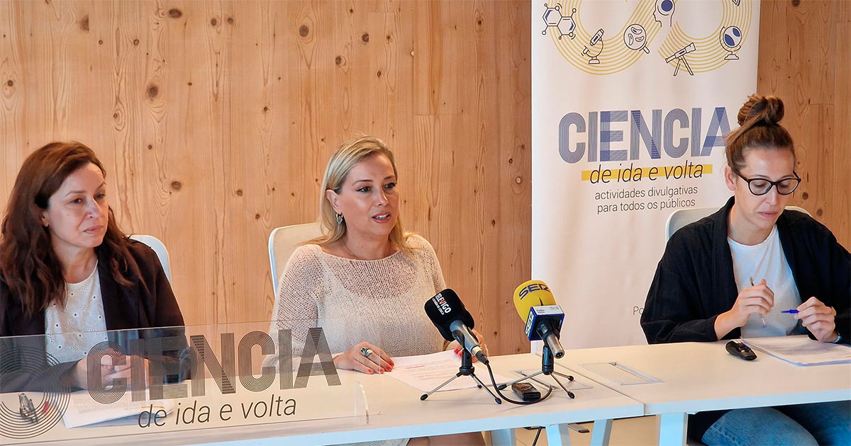 Acompañada por las técnicas de UCC+i, Ana Costa y Elena Muiños, Valderrama ha recordado que en la anterior edición más de 10.000 personas participaron en las actividades desarrolladas por el programa. Con financiación de la Fundación Española para la Ciencia y la Tecnología (FECYT), del Ministerio de Ciencia, Innovación y Universidades, las actividades de esta quinta edición del programa se llevarán a cabo entre octubre de 2025 y junio de 2026 en los campus de Vigo, Ourense y Pontevedra.