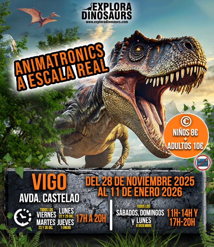 La Navidad de Vigo contará con su propio universo de dinosaurios en una de las atracciones más sorprendentes de este año. Ubicado junto al tradicional Circo, en la Avenida de Castelao, se instalará un recinto que albergará hasta 30 piezas de dinosaurios, la mayoría a tamaño real.